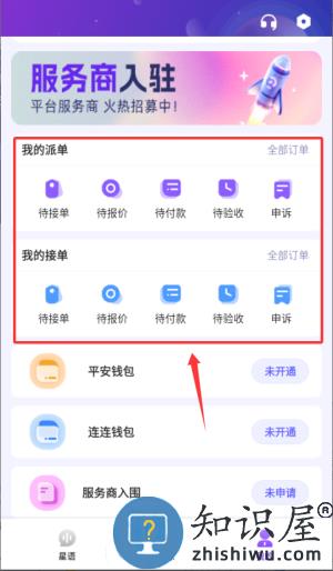 1、在服务商入驻应用的"我的"页面查看订单状态信息。