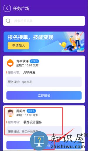 3、选定目标任务点击立即报名,参与接单操作。