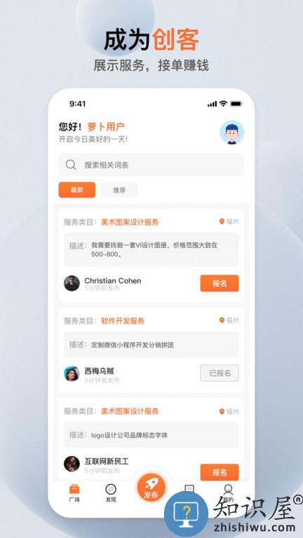 萝卜创客是款方便找人办事,企业灵活用工任务外包的APP。