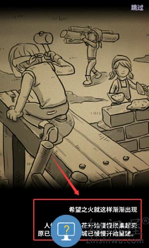 3、查看红框内希望之火重建描述,点击跳过按钮继续。