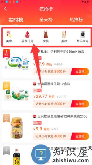 1、在首页功能区点击疯抢榜,进入热门商品榜单页面。