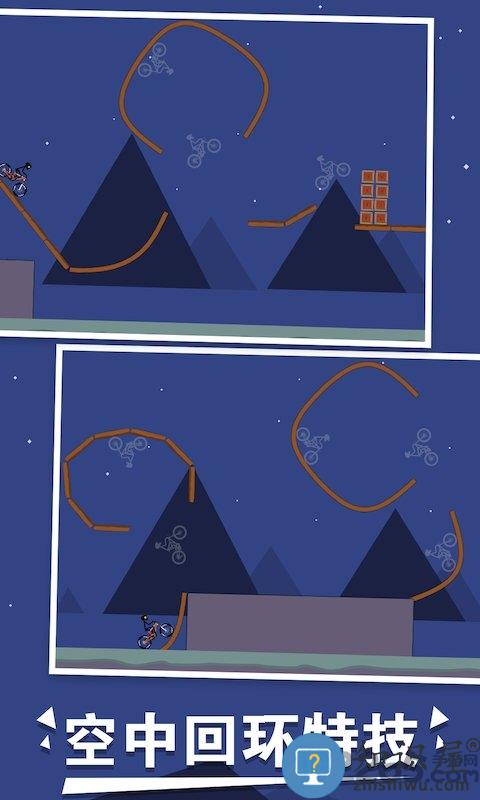 1、玩家需操控火柴人驾驶自行车在各种赛道飞跃并完成空中翻转等特技。