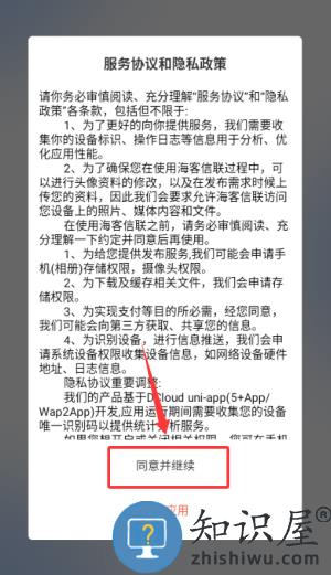 1、在海客信联中点击"同意并继续",进入功能主页面。