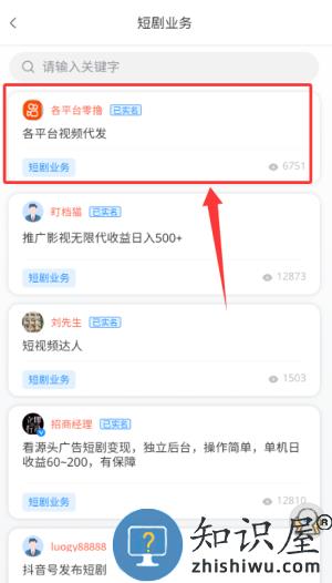 2、选择短剧业务功能入口,跳转至项目列表界面。