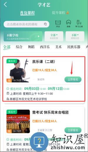3、在学才艺板块挑选心仪课程,点击立即报名即可参与学习。