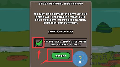 2、进入游戏点击红色框框里打√然后接受并进入。