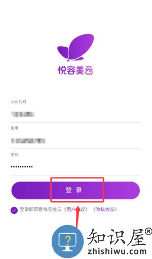 1、在悦容美云中点击"同意"温馨提示,进入登录填写界面。