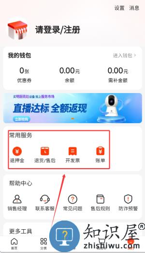 4、我的页面集中处理押金退还、商品退货、售后申请、发票开具及账单查询。