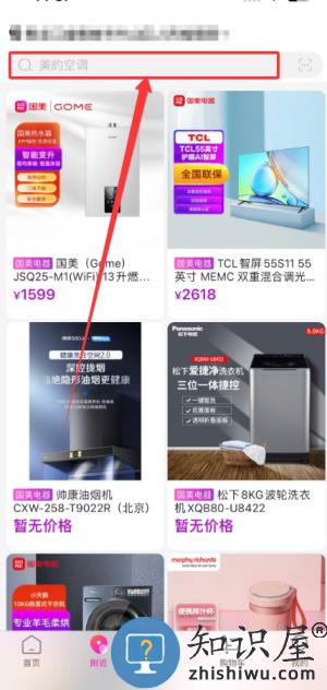 1、附近页面设有搜索框,支持查找并浏览周边商家在售商品信息。