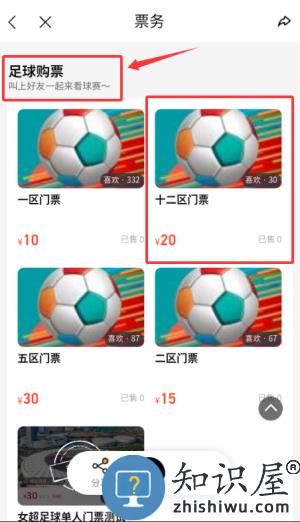 3、选定目标赛事门票如十二区门票,推进购票流程。