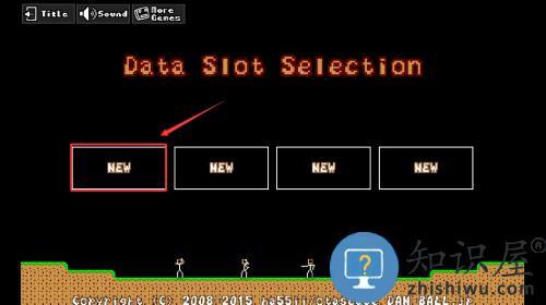 2、选择红框箭头指向的NEW存档位,创建新游戏。