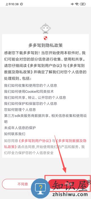 1、在多多驾到中点击"同意"隐私政策,进入驾照类型选择界面。
