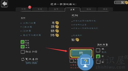 1、点击红框标注的玩按钮,选择游戏模式开始挑战。