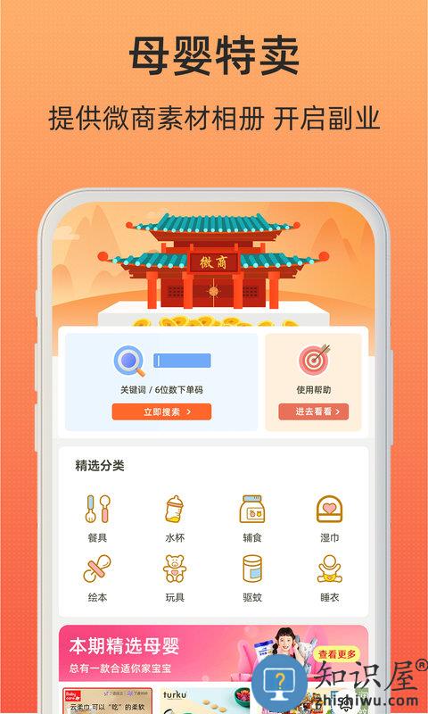 4、母婴特卖专区销售儿童餐具、水杯、辅食、纸巾、绘本与玩具等用品。