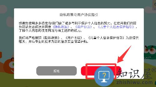 1、点击隐私政策与用户协议指引里的同意并继续。