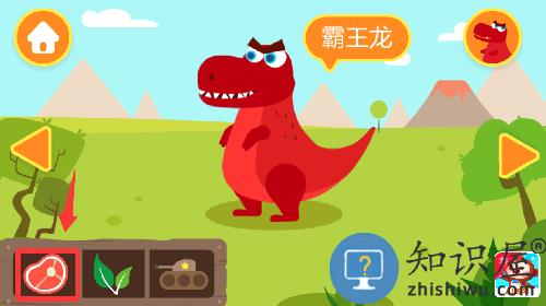 3、进入游戏点击左下角的肉给霸王龙吃。