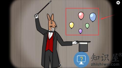 蝴蝶J:来回切换房间,直到看见红色兔子气球,戳破。