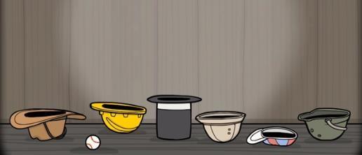 4、第四幕:调整手枪的发射方向,将5只帽子与棒球击落。之后将棒球,以及紧接着掉落的其他物品放到对应的帽子里。