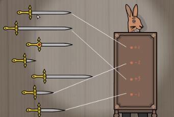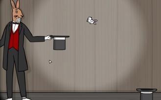 9、第九幕:通过改变兔子先生抛出小白兔的角度,让小白兔精准无误地落入放置在地上的魔术帽。