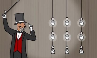 11、第十一幕:每次点击兔子先生的魔法棒,都会点亮/熄灭枚灯泡。可以通过点击兔子先生的左手进行水平位移,通过点击兔子先生的帽子进行竖直位移,最终将所有灯泡点亮。