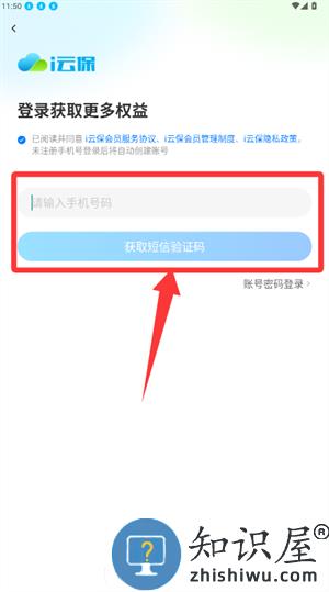 2、在登录页输入手机号,获取并填写短信验证码登录。