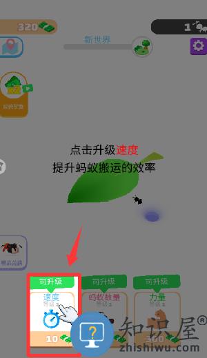 2、进入游戏点击升级速度可以提升蚂蚁搬运效率。
