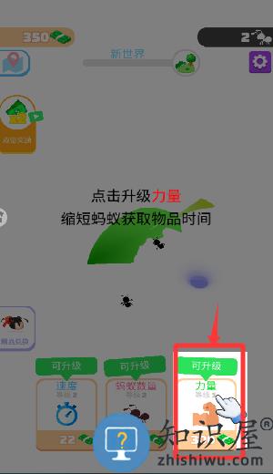 4、再点击升级力量,缩短蚂蚁获取物品时间。
