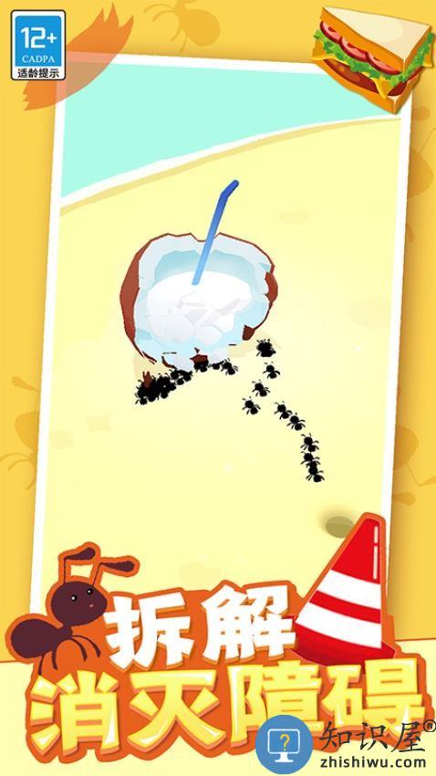1,清新卡通画面营造独特世界观,舒适明快的视觉风格让微观蚂蚁王国栩栩如生,搬运食物的轨迹与巢穴扩建过程都呈现出生动细节。 2,放置玩法与主动操作结合,离线期间蚁群持续收集基础资源,上线后可手动指挥关键行动,平衡了休闲放松与策略规划的体验节奏。 3,障碍破解与食物搬运体系紧密相连,不同体积的食物需拆解为可搬运单元,巧妙规划运输路线避开天敌,考验即时决策与路径优化能力。 4,蚂蚁种类收集与职能分工明确,工蚁负责运输,兵蚁清除威胁,蚁后维持繁衍,合理调配各类蚂蚁比例是壮大族群的核心策略。