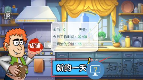 3、点击红框标注的蓝色新的一天按钮,开始经营店铺。