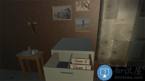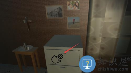 2、点击红框箭头指向的矮柜抽屉,调查内部物品。