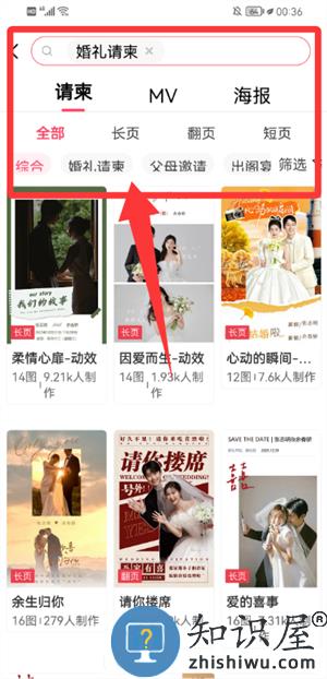 1、选择婚礼请柬项,即可浏览相应模板列表。