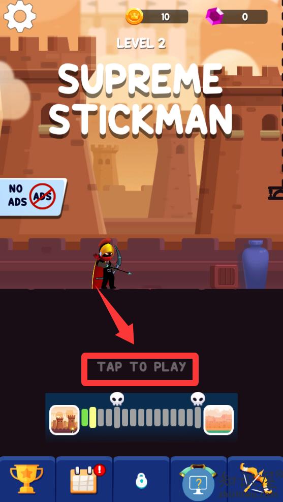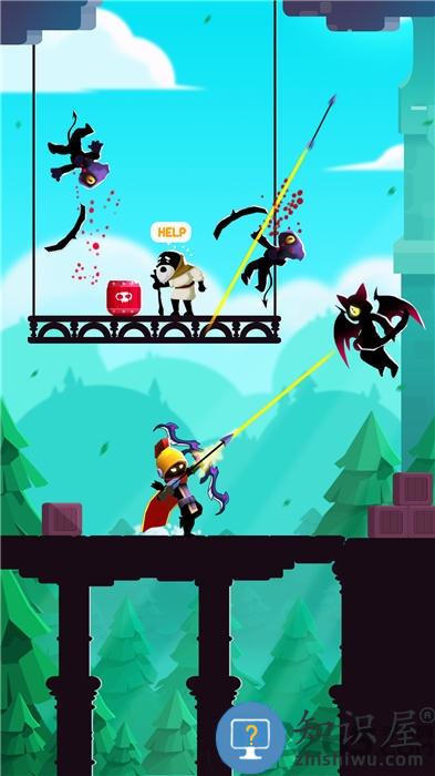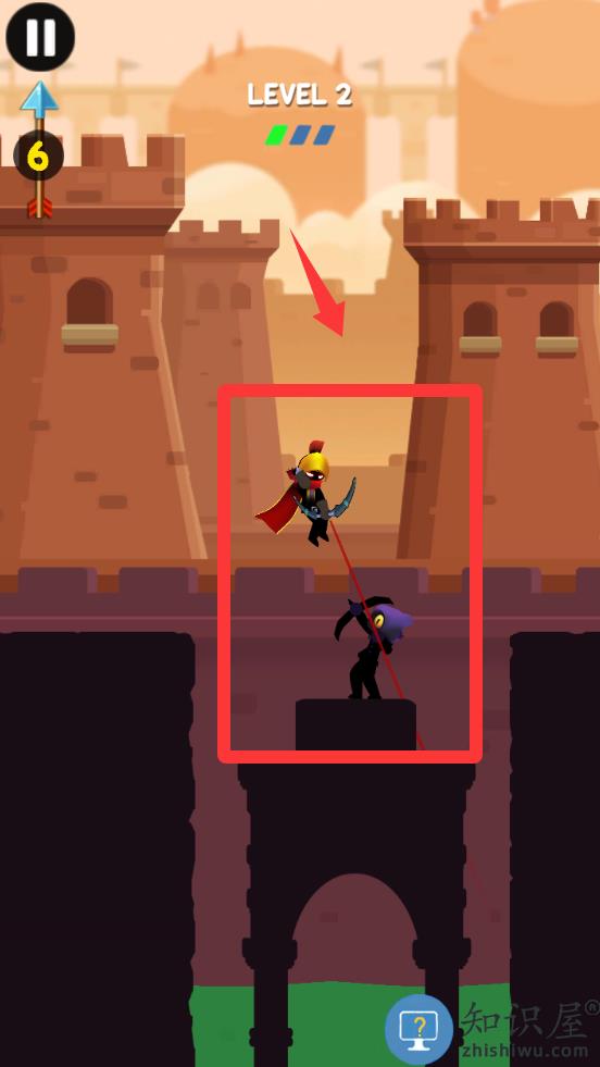 2、拖动屏幕射箭,瞄准对面的火柴人射击。