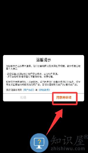 1、点击温馨提示里的同意并继续。