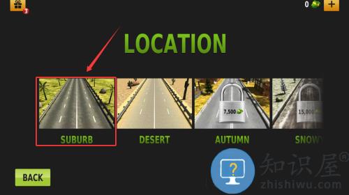 2、在地图选择界面,点击红框箭头指向的郊区地图。