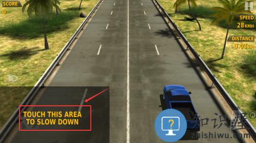 3、点击红框标注的点击减速区域,控制车速安全驾驶。