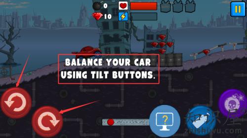 2、使用红框箭头指向的倾斜按钮,控制车辆保持平衡。