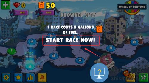 3、消耗5加仑燃料,点击红框START RACE NOW按钮开始比赛。