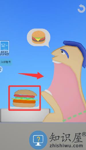 4、把红色框框里的汉堡包喂进他嘴里就通关了。