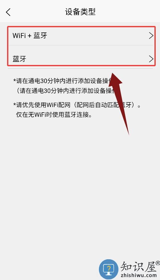3、在设备类型选择页,可根据型号选择WiFi蓝牙或纯蓝牙匹配。