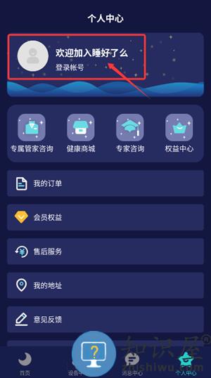 2、进入应用个人中心,点击顶部登录区域完成账号验证操作。