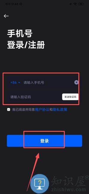 3、输入手机号及验证码,勾选协议后点击登录完成操作。