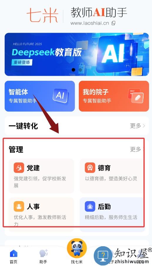 2、首页包含管理、党建、德育、人事与后勤等常用功能模块。