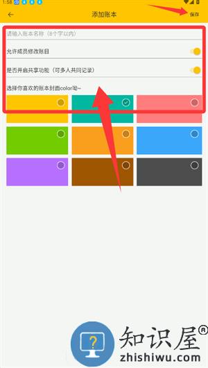 3、填写账本名称与设定权限后,点击保存完成创建。