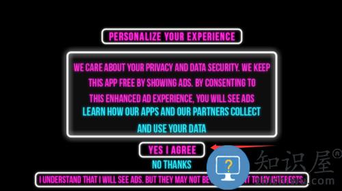 1、点击红框箭头指向的YES I AGREE按钮,同意广告偏好设置。