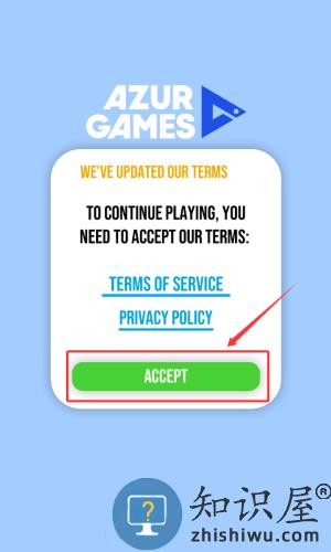 2、点击红框内ACCEPT按钮,确认同意AZUR GAMES的更新条款。