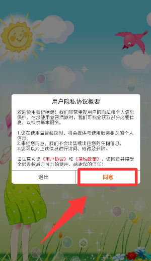 1、点击用户隐私协议概要里的同意并继续。