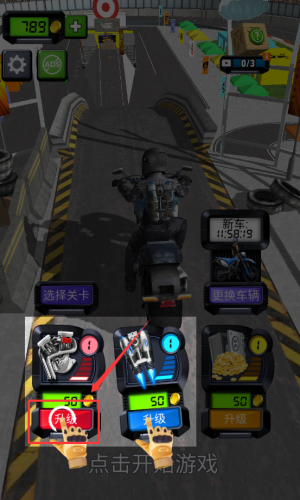 2、通过虚拟按钮驾驶摩托赛车进行特技;