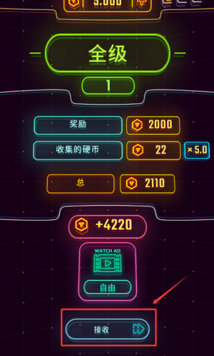 2、点击接收按钮,获得奖励和金币。