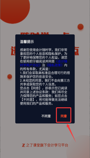 1、于提示弹窗中点选同意,随后进入课堂登录选择页。