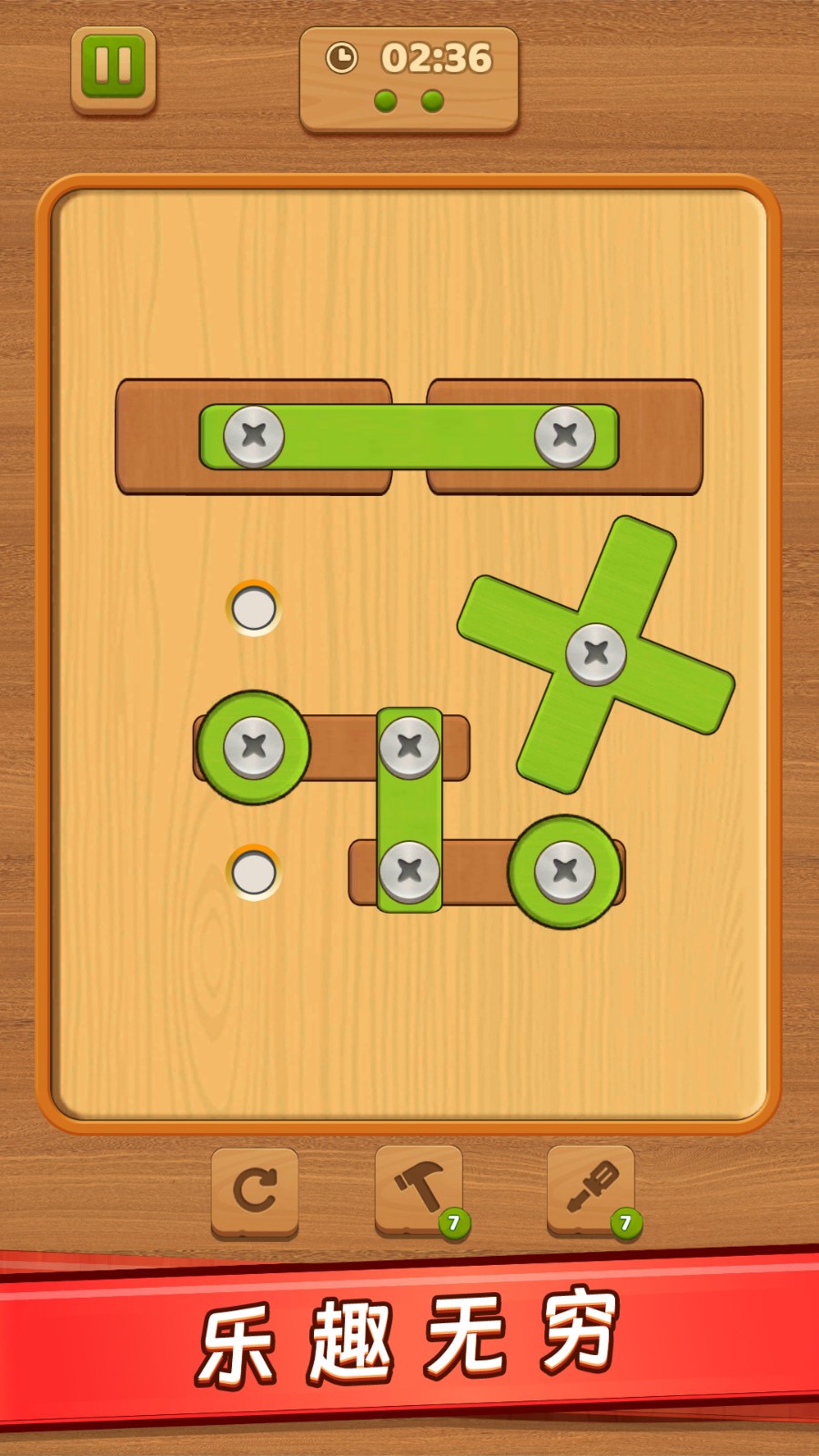 2、画面采用简洁明快的工业风格,螺丝与结构件以不同颜色区分,便于玩家观察布局,界面设计清晰,无冗余元素干扰。